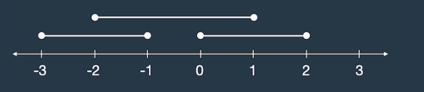 선분이 두 개 이상 겹친 곳은 [-2, -1], [0, 1]로 길이 2만큼 겹쳐있습니다.