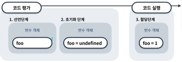 ▶코드 평가시점에 초기화가 되어있으므로, 변수의 할당문이 실행되기 전에도 참조가 가능하다. (호이스팅)