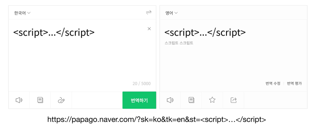 검색어 등을 보여주는 곳에 스크립트를 심는 공격