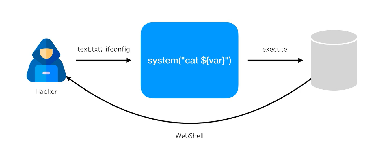 애플리케이션에서 사용되는 시스템 명령에 악의적인 명령어를 삽입하는 공격 (WebShell Attack)
