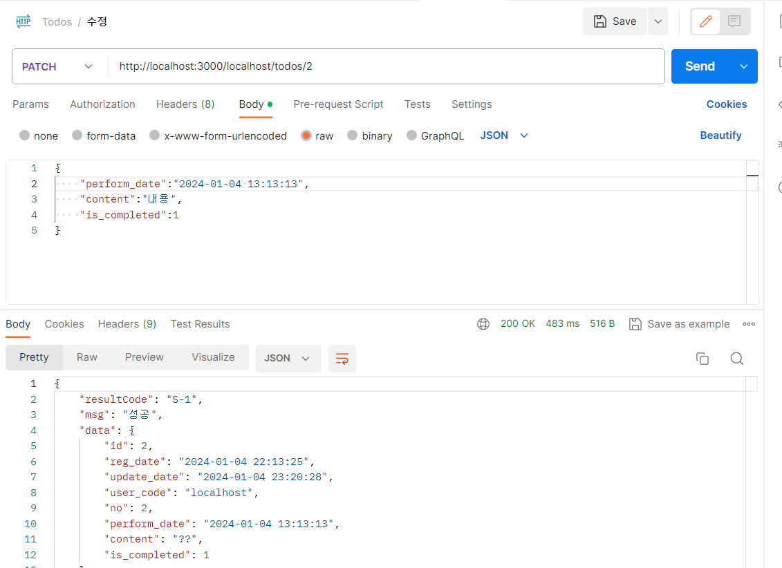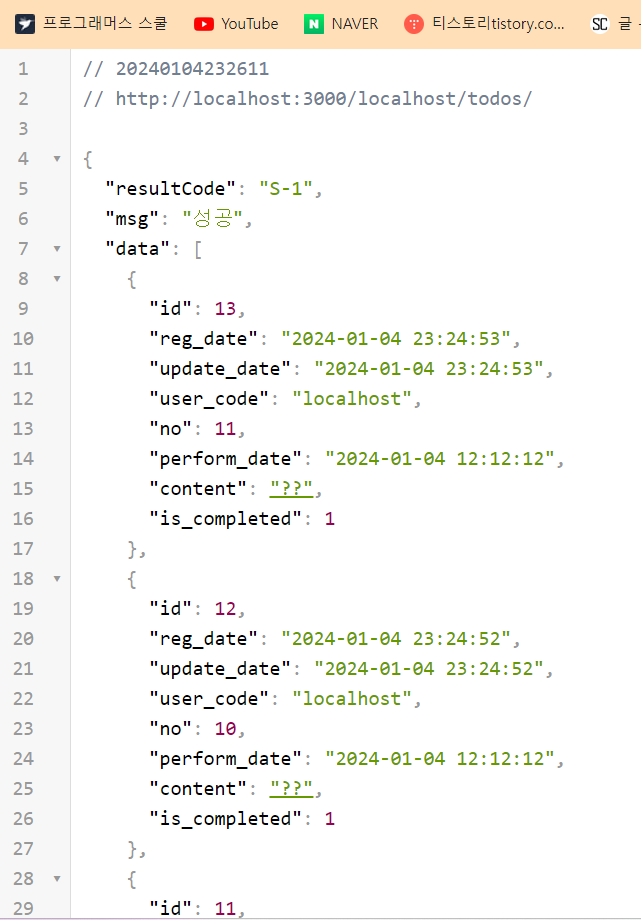 msg: `${justCreatedTodoRow.id}번 할일을 생성하였습니다`,