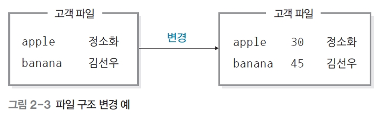사용하는 파일의 구조를 변경하면 응용 프로그램도 함께 변경해야 함