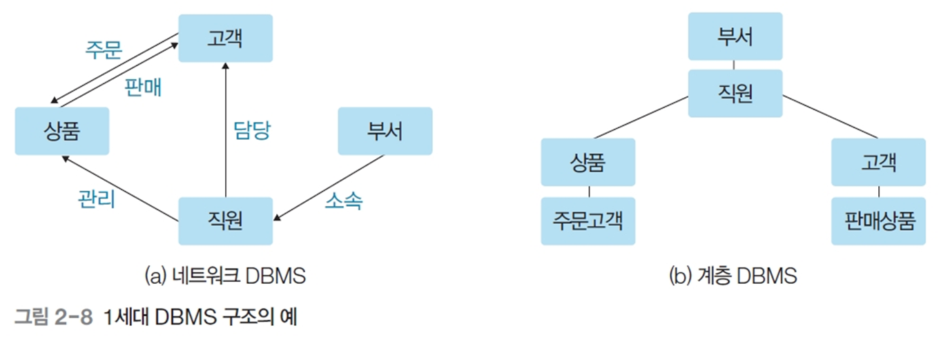 1세대 : 네트워크 DBMS, 계층 DBMS