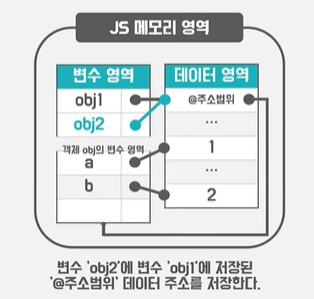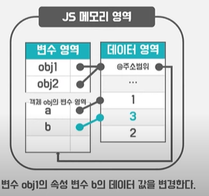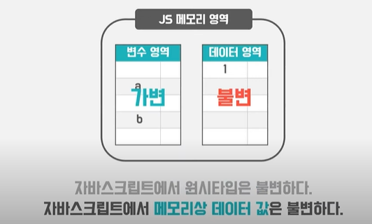 자바스크립트에서 참조타입은 가변적이다. 참조타입내 데이터 영역의 값들은 불변하지만.