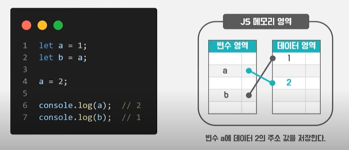 그리고 변수a,b에 저장된 값이 원시타입임을 확인 할 수 있고 해당되는 데이터를 할당하고