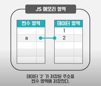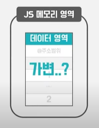 데이터 영역이 가변적일고 할 때 위의 예제에서 변수 a에 2를 저장하게 되면 기존의 데이터 1이 저장되어있는 공간에