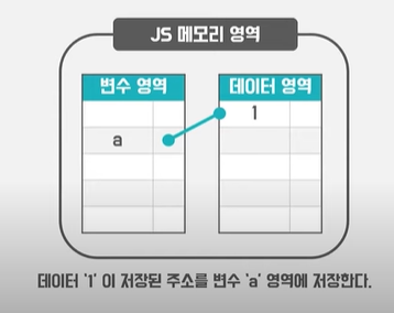 여기 코드를 볼때 a라는 이름을 가진 변수에 숫자1을 할당했습니다.