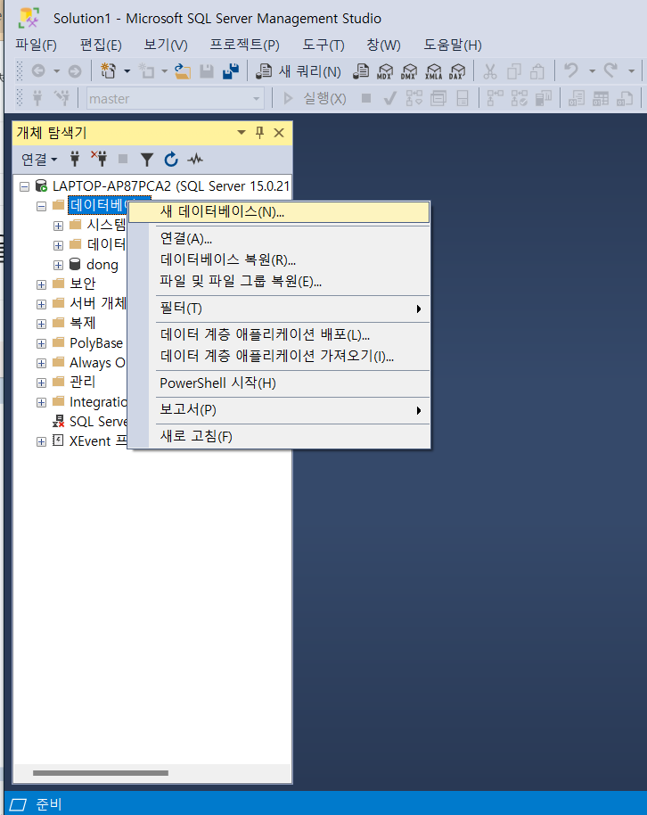 우선 새로운 데이터 베이스를 하나 만들어주고