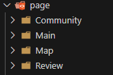 를 만들어주고 페이지 폴더는 메인화면을 위한 Main폴더, 지도화면을 위한 Map폴더,