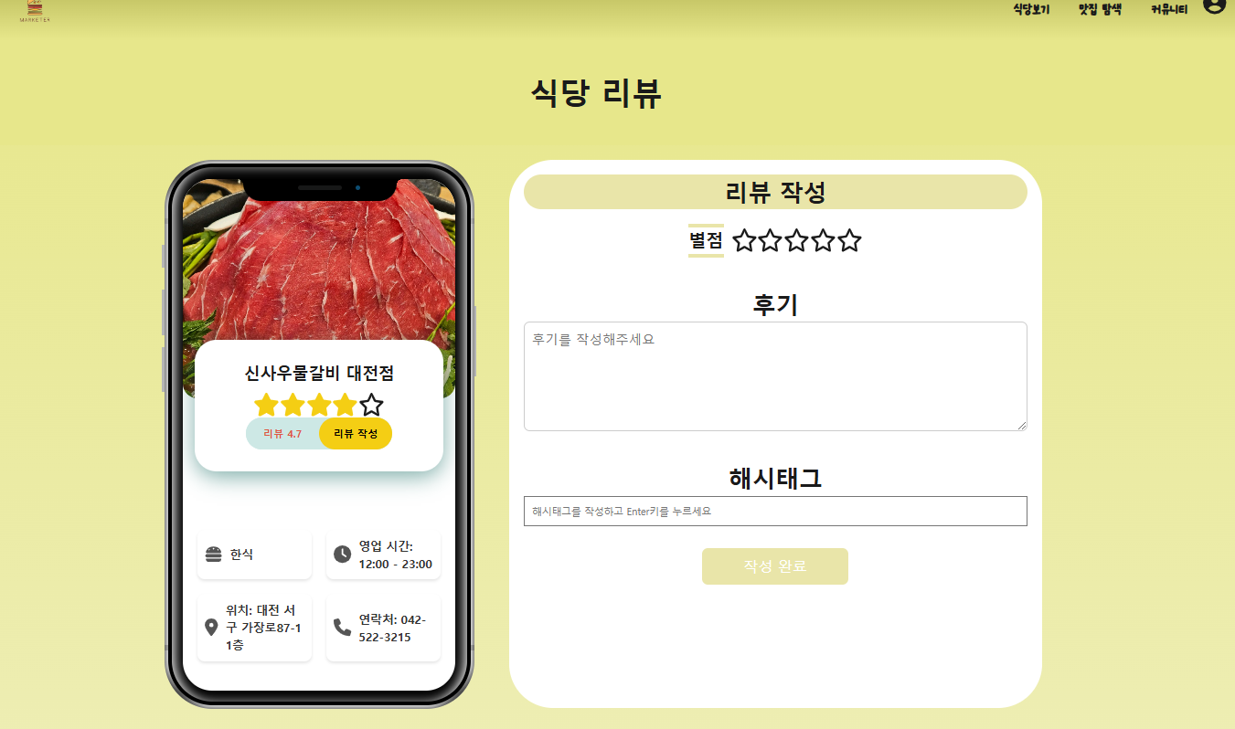이렇게 해당 식당에 대한 리뷰를 작성할 수 있게 됩니다.