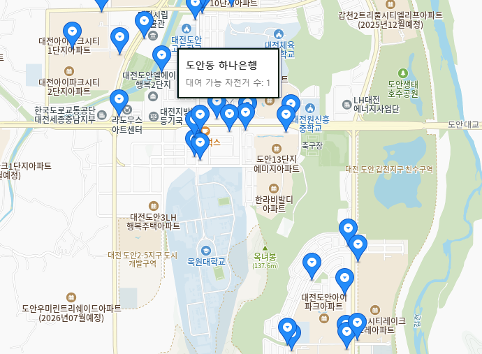 또 오른쪽에 있는 자전거 화면 보기를 클릭하게 되면 타슈api를 통해 자전거의 현재상황을 알 수 있도록 하였습니다.