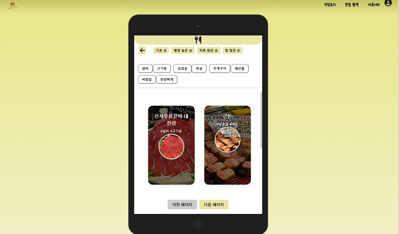 다음은 식당 보기 화면을 살펴 보도록 하겠습니다.