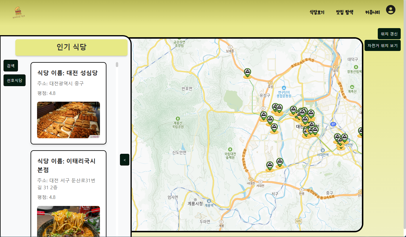 화며에 보이는 것처럼 왼쪽 식당 카드들을 볼 수 있는데 식당 카드를 클릭하면