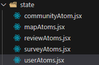 우선 프론트 코드를 보기전에 설계부터 알아보겠습니다. 우선 상태관리를 해주기 위해 리코일을 이용하여 state폴더안에