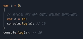 var : 함수수준 스코프 const , let 블록수준 스코프