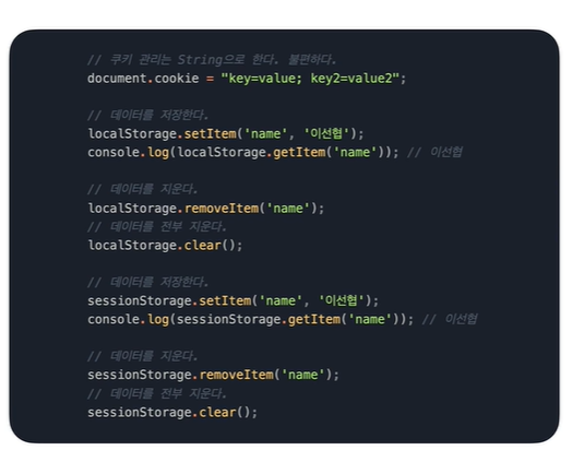 ▶클라이언트에서 저장,관리하는 데이터들.브라우저를 닫아도 데이터를 유지할 수있다.