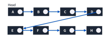 Head에서 Tail까지 단방향으로 이어지는 연결 리스트 가장 단순한 형태의 연결 리스트다.