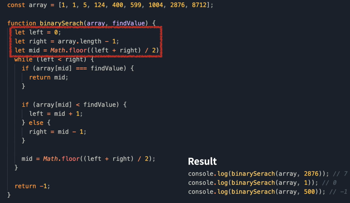 정렬 되어있는 요소들을 반씩 제외하며 찾는 알고리즘