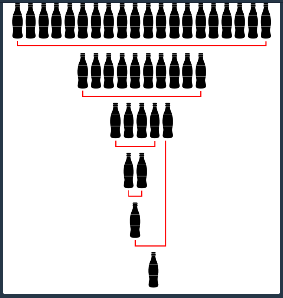 문제를 풀던 상빈이는 콜라 문제의 완벽한 해답을 찾았습니다. 상빈이가 푼 방법은 아래 그림과 같습니다. 우선 콜라 빈 병 20병을 가져가서 10병을 받습니다. 받은 10병을 모두 마신 뒤, 가져가서 5병을 받습니다. 5병 중 4병을 모두 마신 뒤 가져가서 2병을 받고, 또 2병을 모두 마신 뒤 가져가서 1병을 받습니다. 받은 1병과 5병을 받았을 때 남은 1병을 모두 마신 뒤 가져가면 1병을 또 받을 수 있습니다. 이 경우 상빈이는 총 10 + 5 + 2 + 1 + 1 = 19병의 콜라를 받을 수 있습니다.