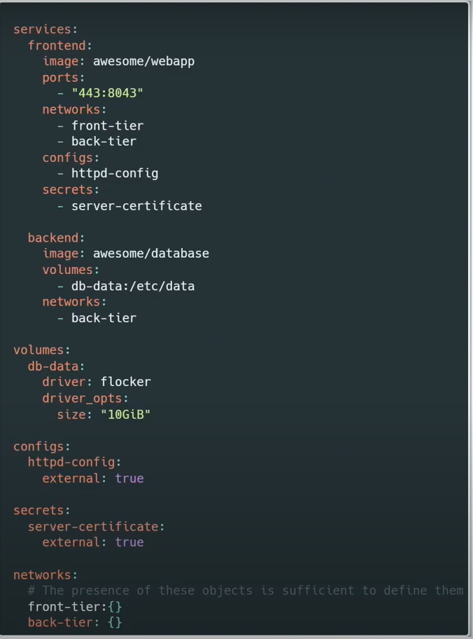 예를 들어 위와 같이 파일을 작성했다면, 'frontend' 와 'backend' 는 각 컨테이너를 정의하게 되며,