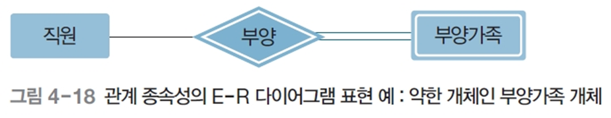 E-R 다이어그램에서 약한 개체는 이중 사각형으로 표현하고,