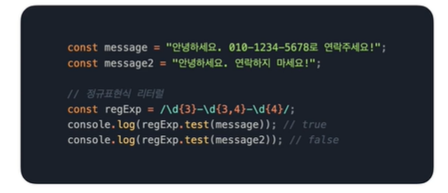 정규표현식 객체의 test함수는 입력받은 문자열에 찾는 패턴이 있는지 찾은후