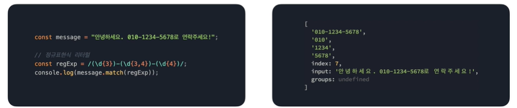 캡처가 적용된 정규표현식을 이용하면 match반환값의 1번 인덱스부터 순차적으로 캡처가 들어간다.