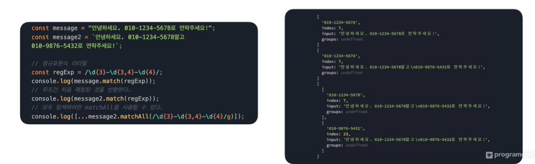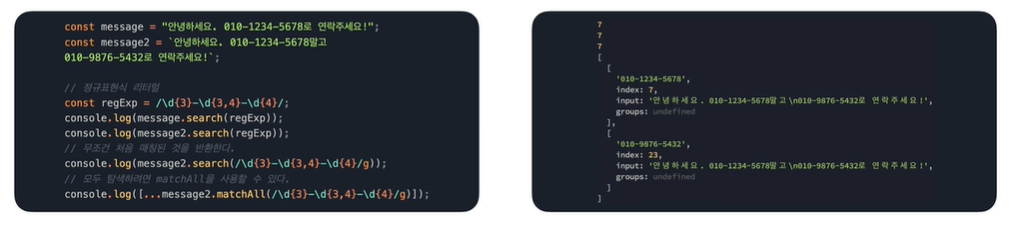 string 객체의 match 함수는 정규표현식 객체를 파라미터로 받아 패턴이 있는지 찾은 후