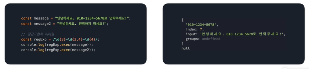 정규표현식 객체의exec함수는 입력받은 문자열에 찾는 패턴이 있는지 찾은 후